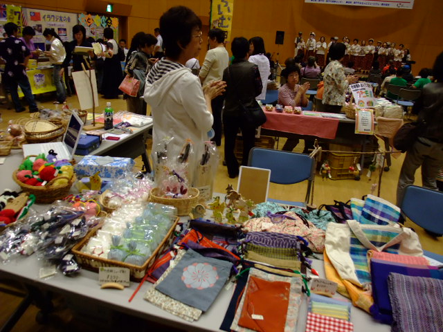 ステージではコーラス、 雑貨販売、新鮮野菜、ガラス作品