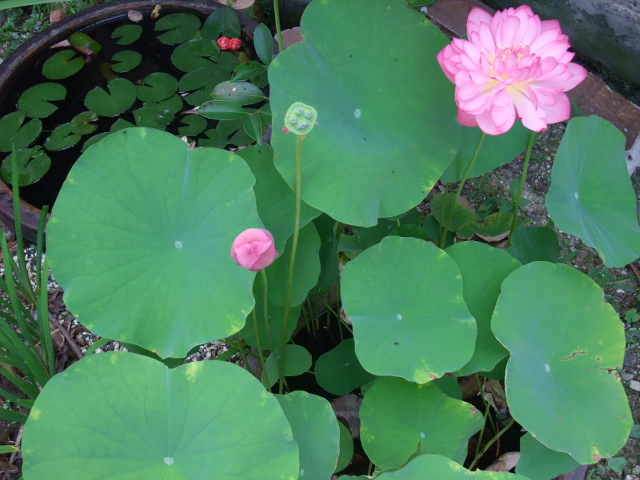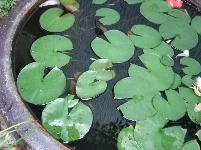 裏庭に睡蓮が咲いている。