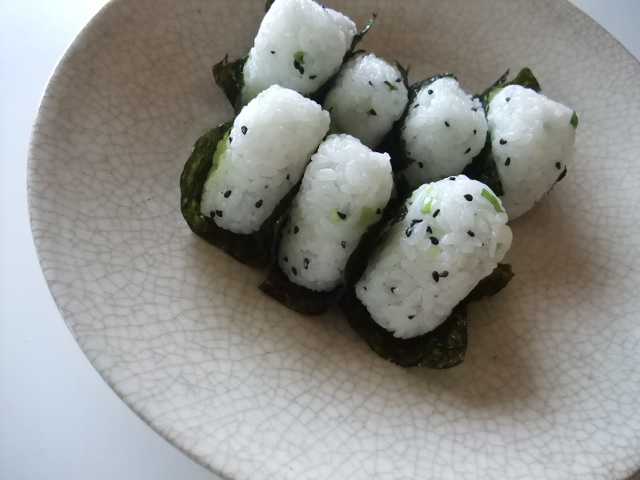 朔日、いただいた韓国のりで「韓国風おにぎり」を作りました。